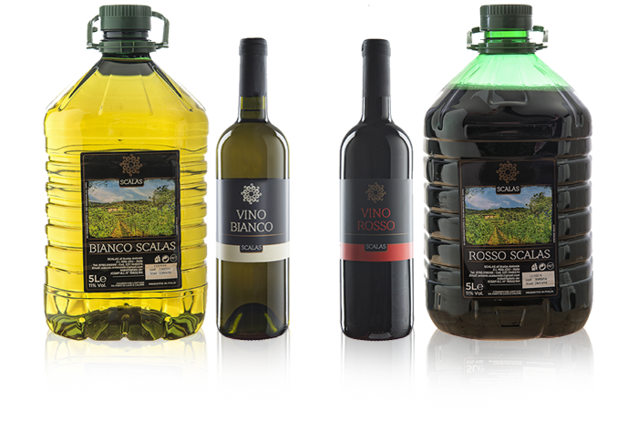 “Confezioniamo”, “imballiamo” e consegnamo stock composti da bottiglie da 75 cl e PET da 5 lt di vino rosso e bianco da tavola.